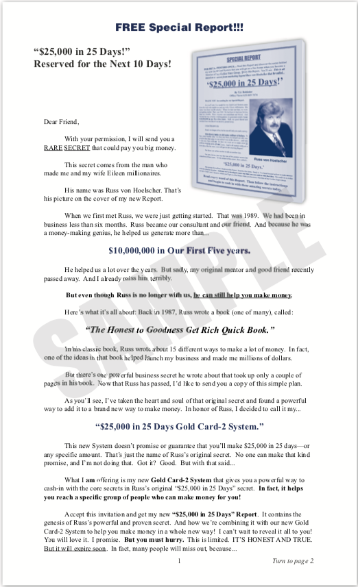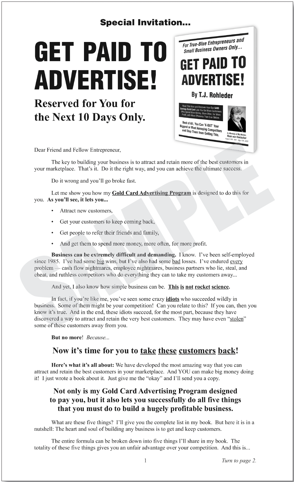 This Affiliate System gives you access to three powerful direct mail letters that attract Members and earn you commissions on sales that we make for you.